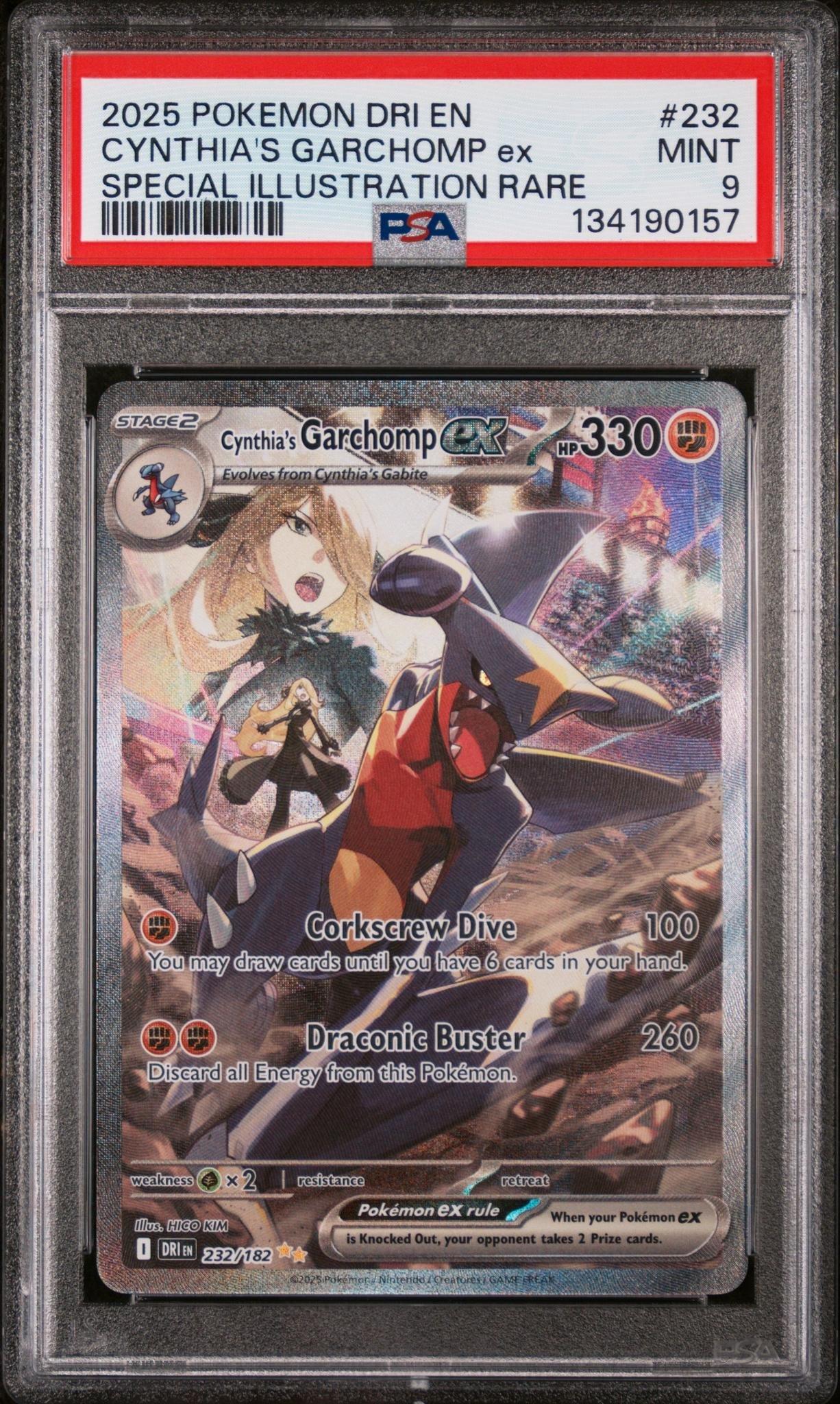 2025 Pokemon Destined Rivals Special Illustration Rare Cynthia’s Garchomp Ex #232 PSA 9