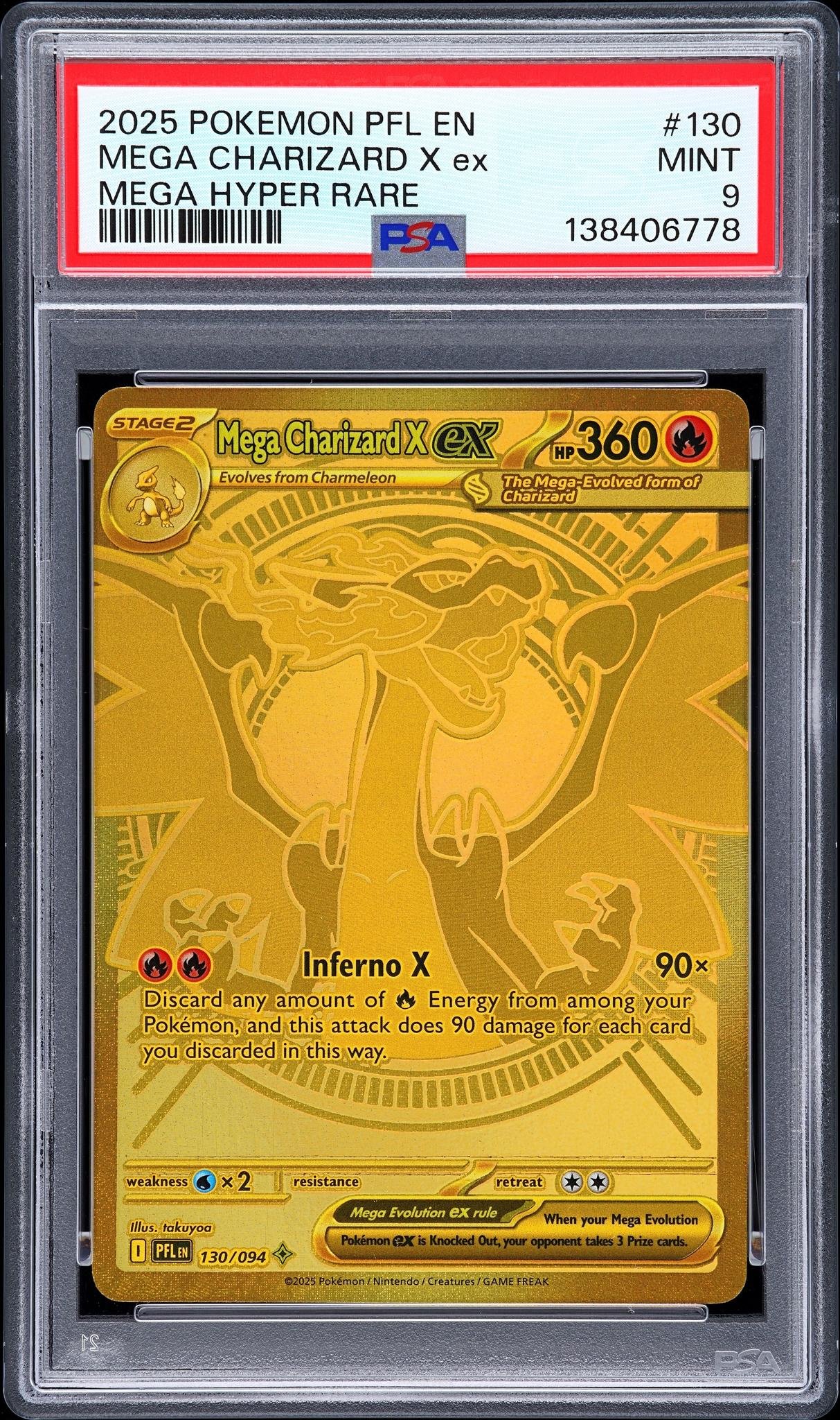 2025 Pokemon Mega Evolution Phantasmal Flames Mega Hyper Rare Mega Charizard X Ex #130 PSA 9