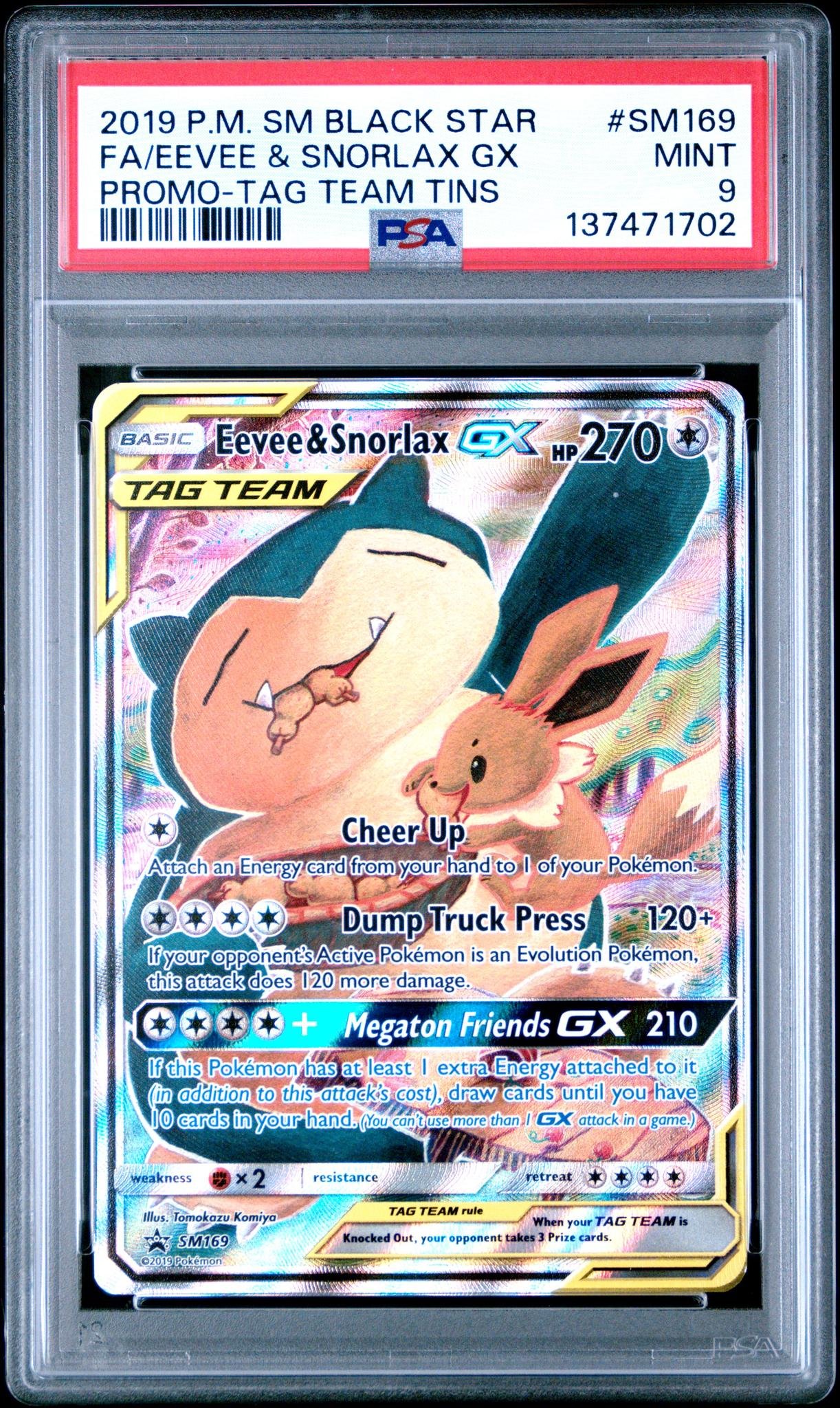 2019 Pokemon Sun and Moon Black Star Promo Tag Team Tins Eevee/Snorlax Gx #SM169 PSA 9